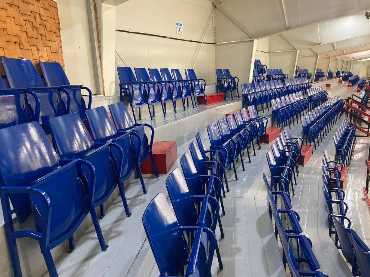 L’ensemble des 600 bancs ont été réparés et repeints incluant le plancher et les murs dans les estrades.
