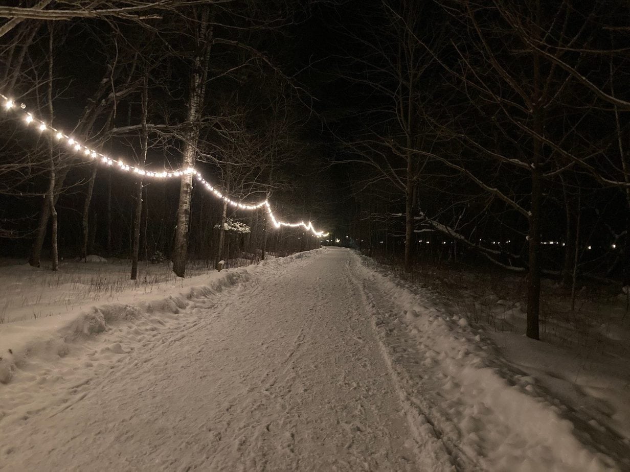 800 mètres et 2600 lumières afin d’illuminer le Parc des Deux Rivières pour profiter des Plaisirs d’hiver!