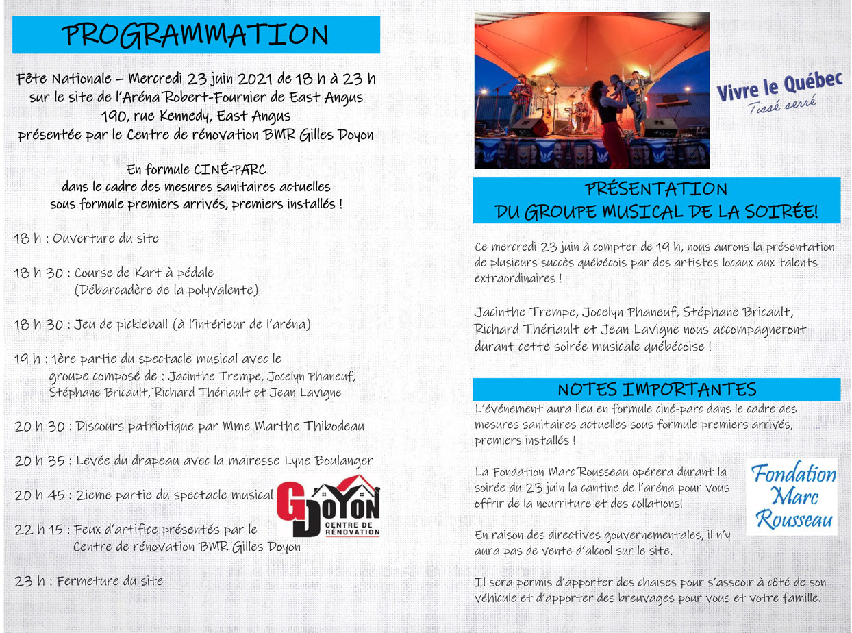 Le Centre de rénovation BMR Gilles Doyon présente la Fête nationale 2021 à East Angus !
