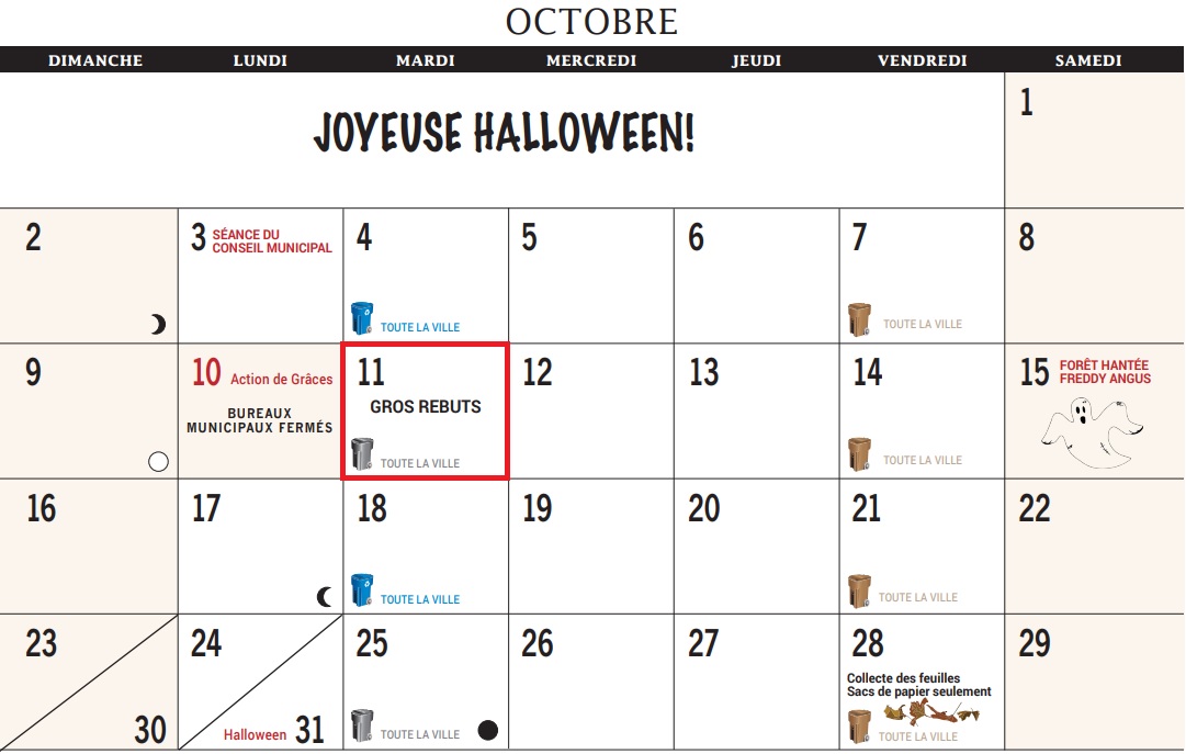 N’oubliez pas! La collecte des gros rebuts aura lieu demain mardi 11 octobre 2022.
