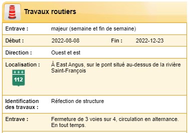 Veuillez prendre connaissance de l’avis en lien avec la prolongation des entraves de la route 112 à East Angus.