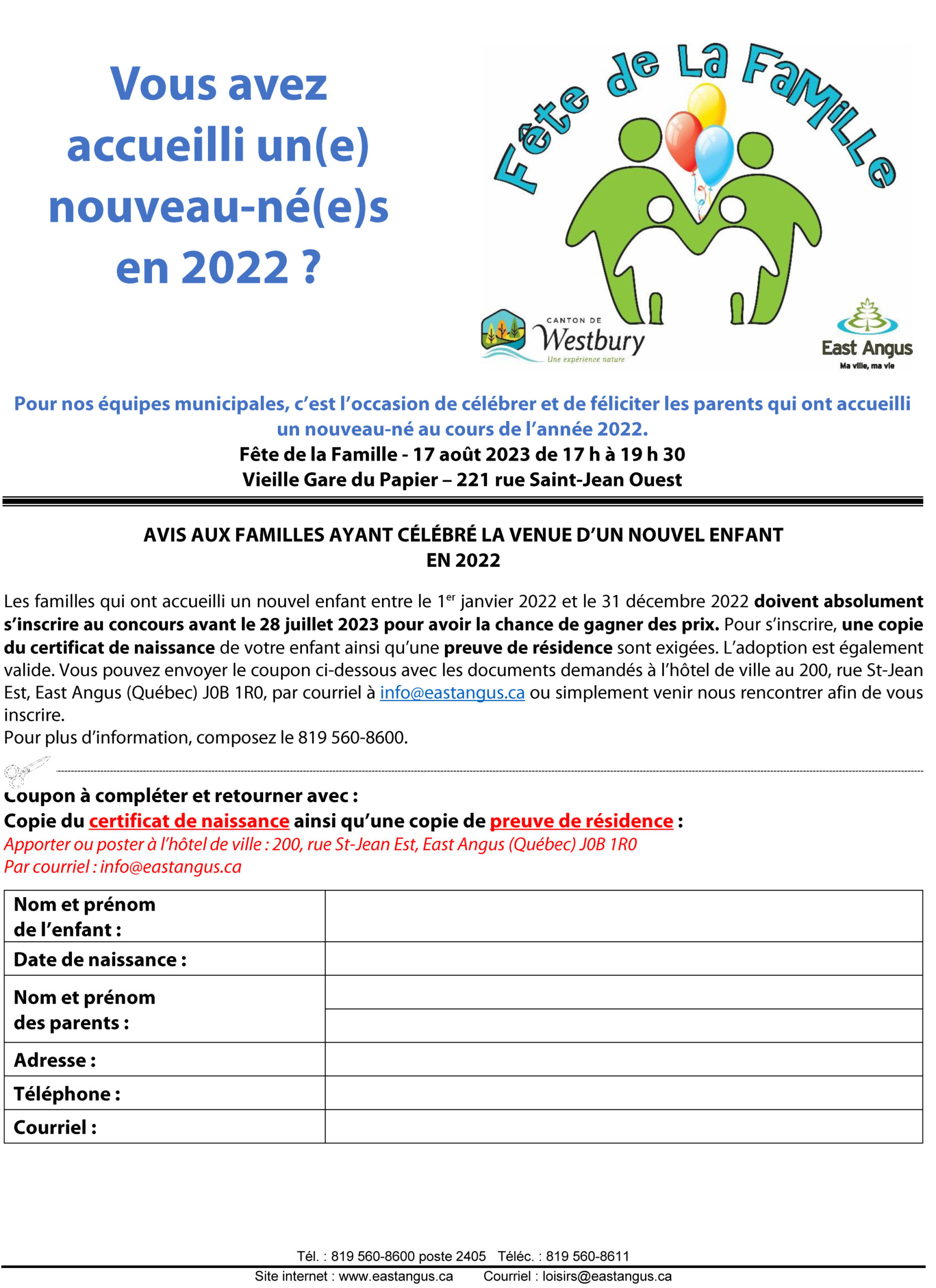 Il est temps pour les familles ayant accueillies un(e) nouveau-né(e) en 2022 de s’inscrire dès maintenant!
