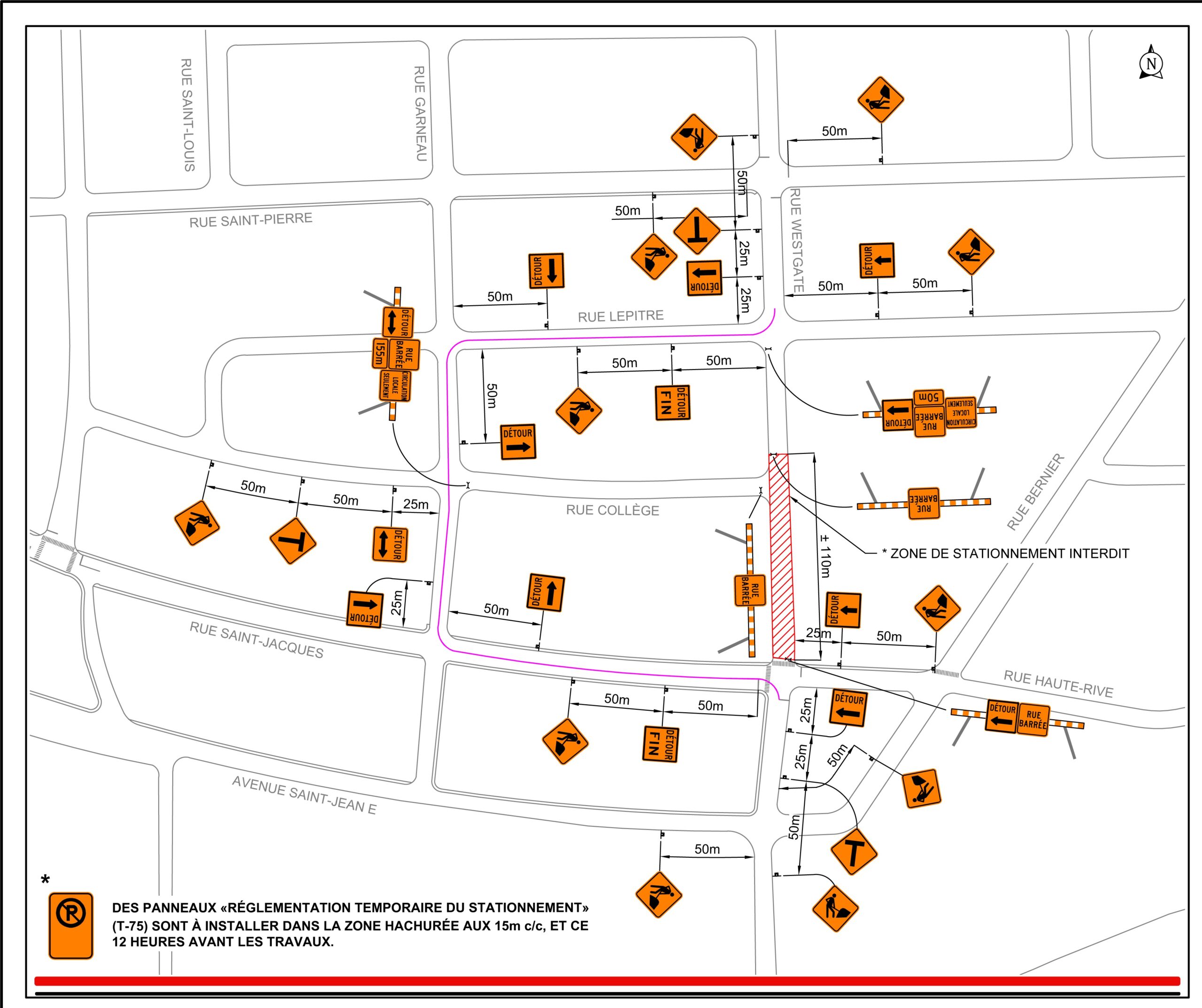 Prendre note de la fermeture de la rue Westgate cette semaine du 15 mai 2023 en fonction des informations reçues de TIJARO Ltée dans le cadre de l’agrandissement de l’École du Parchemin côté collège. Ci-joint le plan de signalisation pour la fermeture de la rue Westgate.