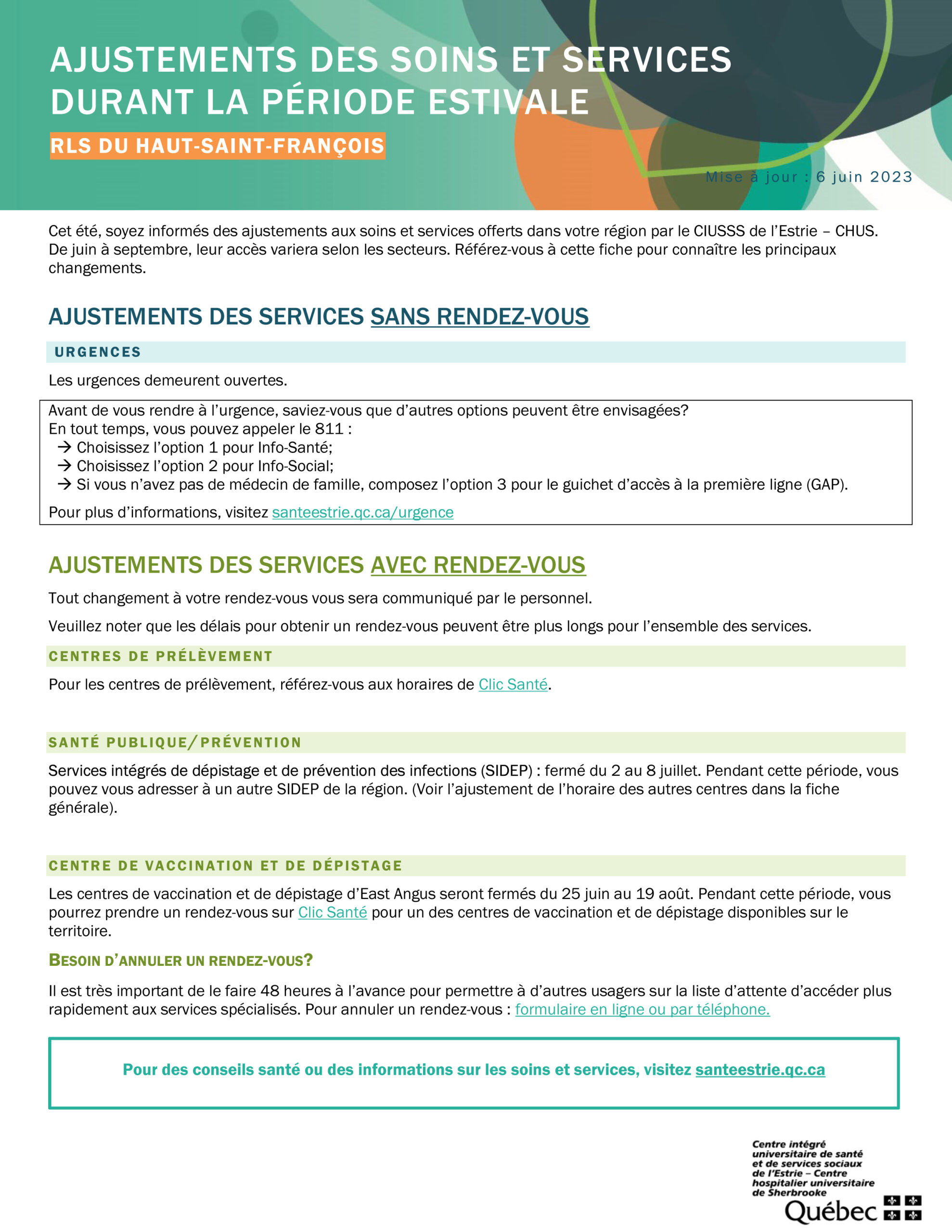 Ajustements des soins et services durant la période estivale Agrandir l'image East Angus2023-06-06T20:48:29-04:006 juin 2023|Actualités| Partager sur les réseaux FacebookTwitterCourriel