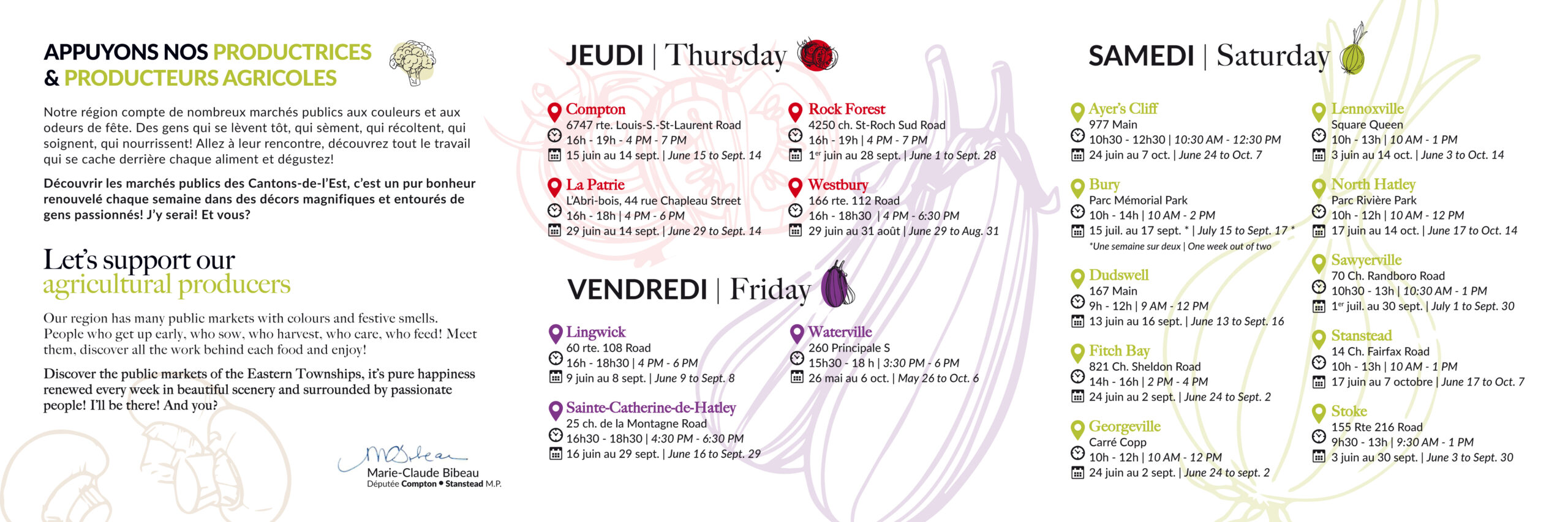 Des marchés publics dans notre région pour tous! Agrandir l'image Lien : https://marieclaudebibeau.libparl.ca/marches-publics-2023/ East Angus2023-06-08T21:48:15-04:008 juin 2023|Actualités| Partager sur les réseaux FacebookTwitterCourriel