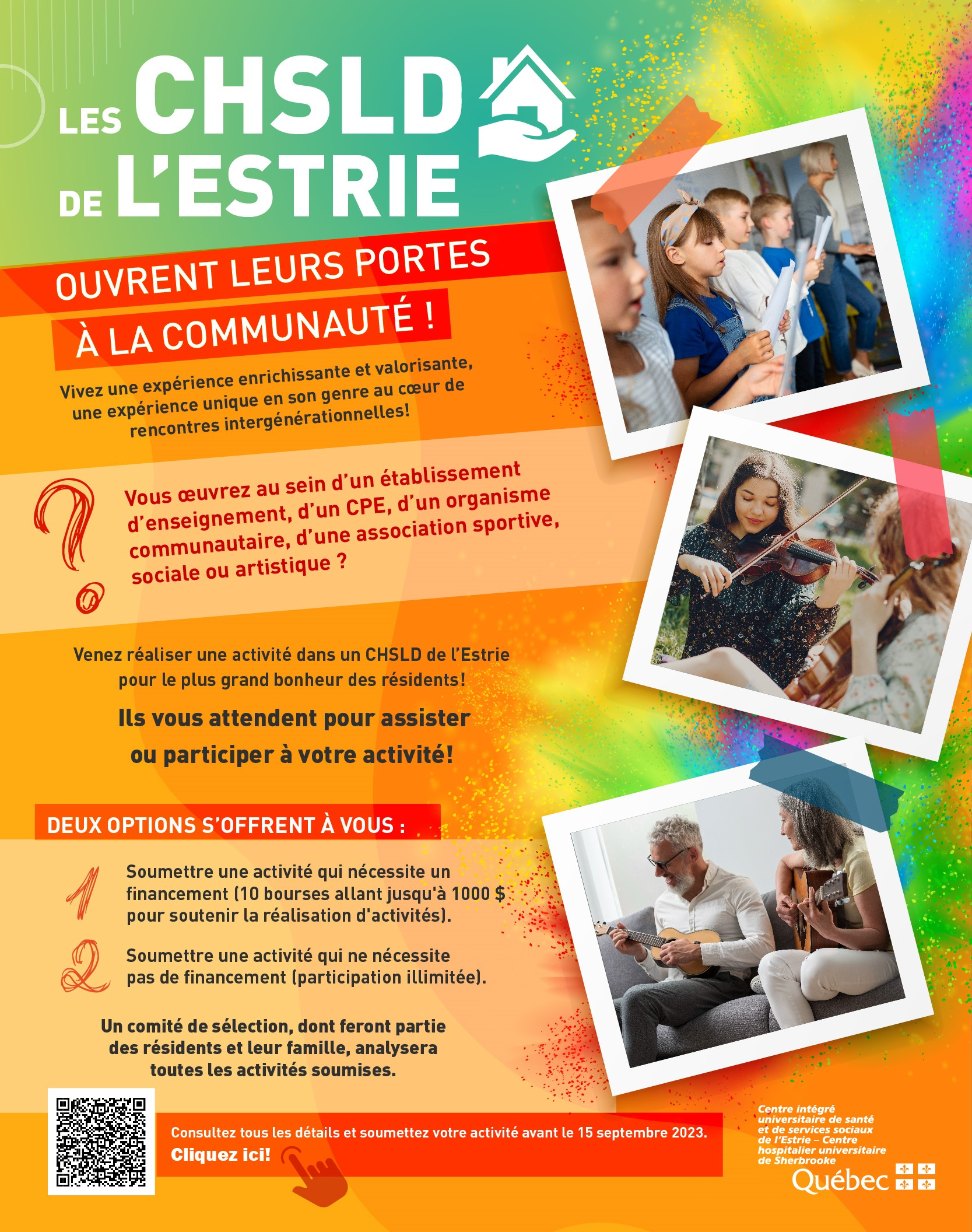 Les CHSLD de l’Estrie ouvrent leurs portes à la communauté Agrandir l'image Les CHSLD de l’Estrie ouvrent leurs portes à la communauté Soumettez une activité! https://www.santeestrie.qc.ca/soins-services/specialises/hebergement-residence/activites-et-loisirs-en-chsld/invitation-implication-communautaire-chsld East Angus2023-06-21T12:19:12-04:0021 juin 2023|Actualités| Partager sur les réseaux FacebookTwitterCourriel