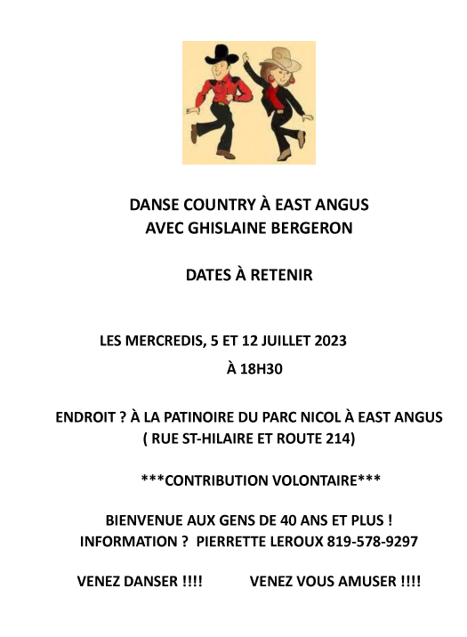 Informations auprès de Pierrette Leroux : 819 578-9297
