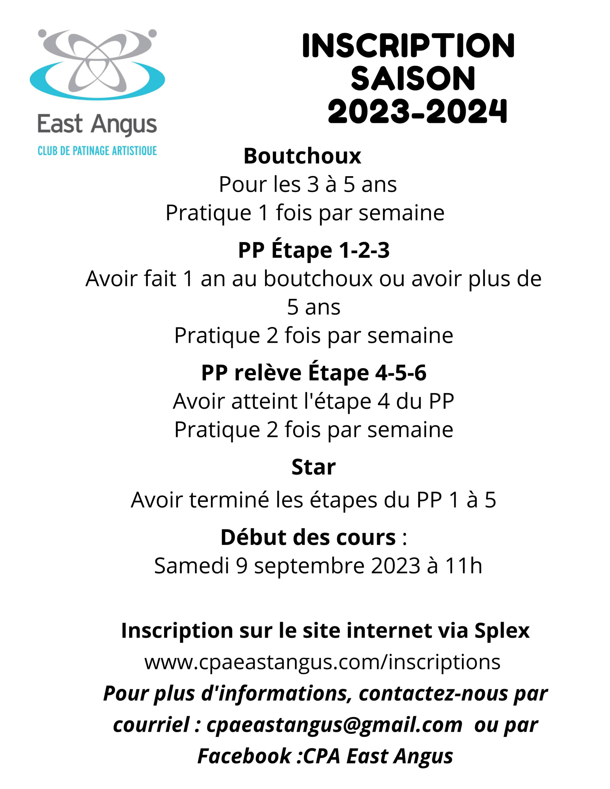 Club de patinage artistique de East Angus – Inscriptions Saison 2023-2024 Agrandir l'image East Angus2023-08-03T14:23:28-04:003 août 2023|Actualités| Partager sur les réseaux FacebookTwitterCourriel