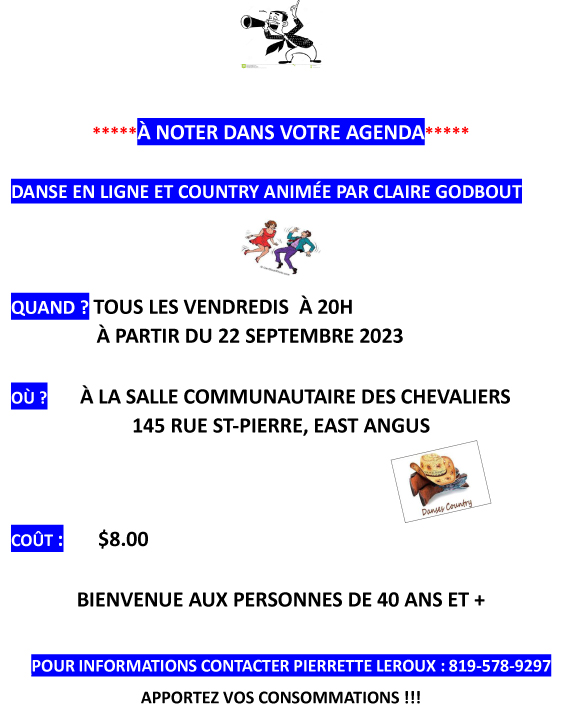 Les soirées dansantes pour les 40 ans et plus sont de retour à partir du vendredi 22 septembre 2023 à 20 h! Agrandir l'image East Angus2023-09-17T19:52:27-04:0017 septembre 2023|Actualités| Partager sur les réseaux FacebookTwitterCourriel