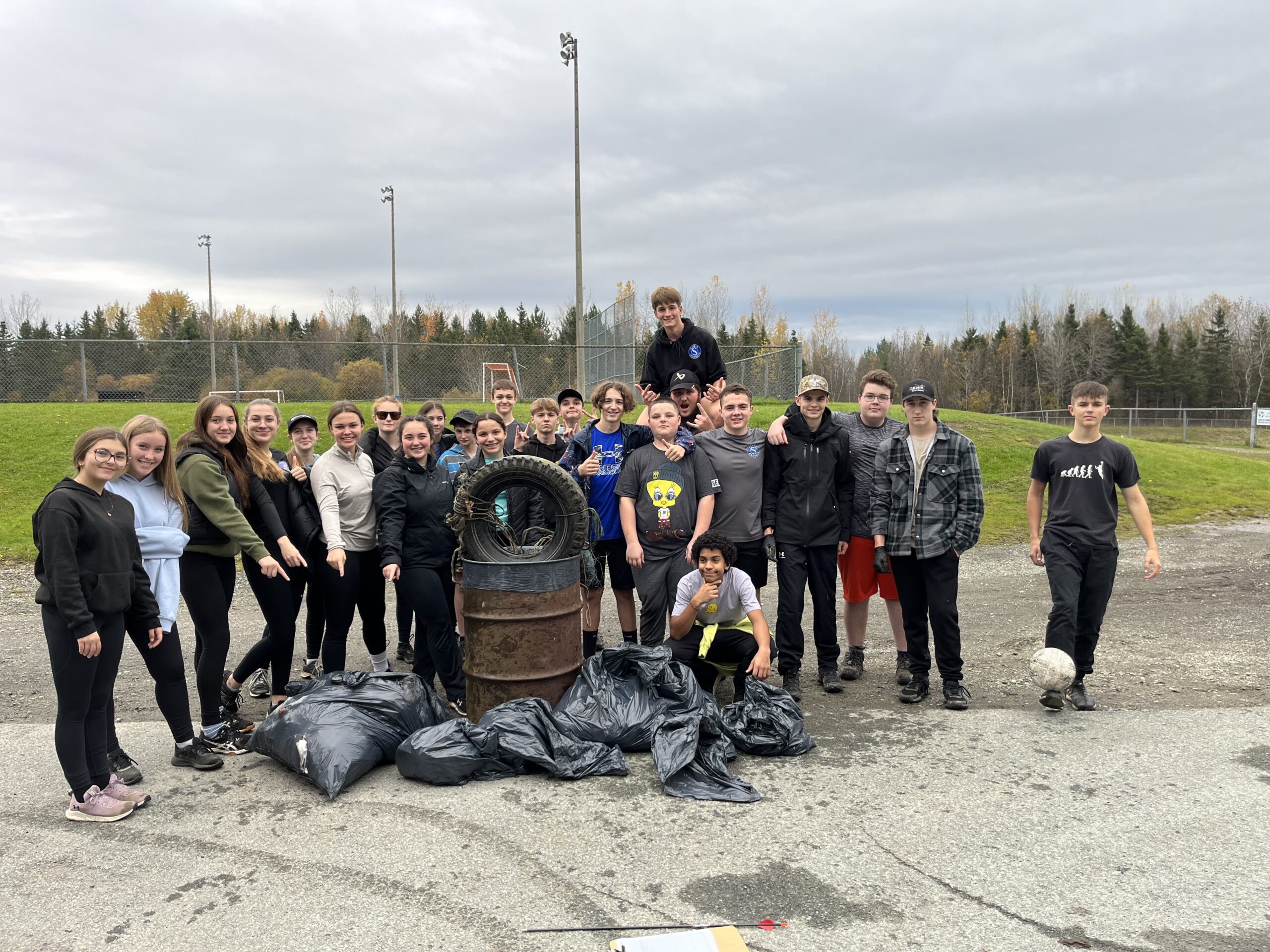 Belle activité de nettoyage avec le groupe 405 de la Polyvalente Louis-Saint-Laurent. Six élèves sont arrivés en retard pour la photo avec 3 sacs supplémentaires. Merci pour votre implication pour la propreté de notre ville et pour notre environnement!