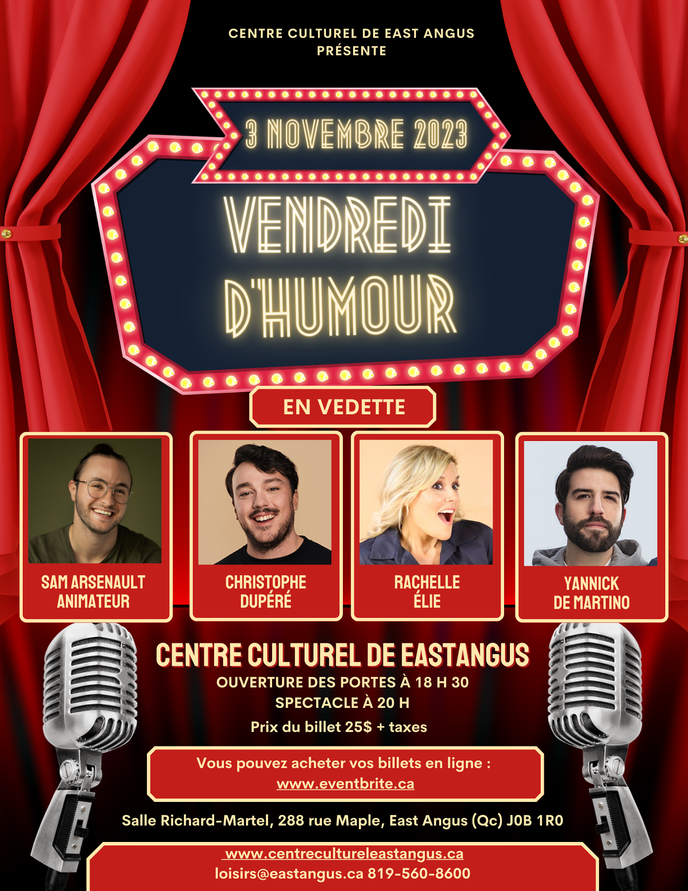 Des soirées pour s’amuser et rire en novembre au Centre culturel de East Angus!