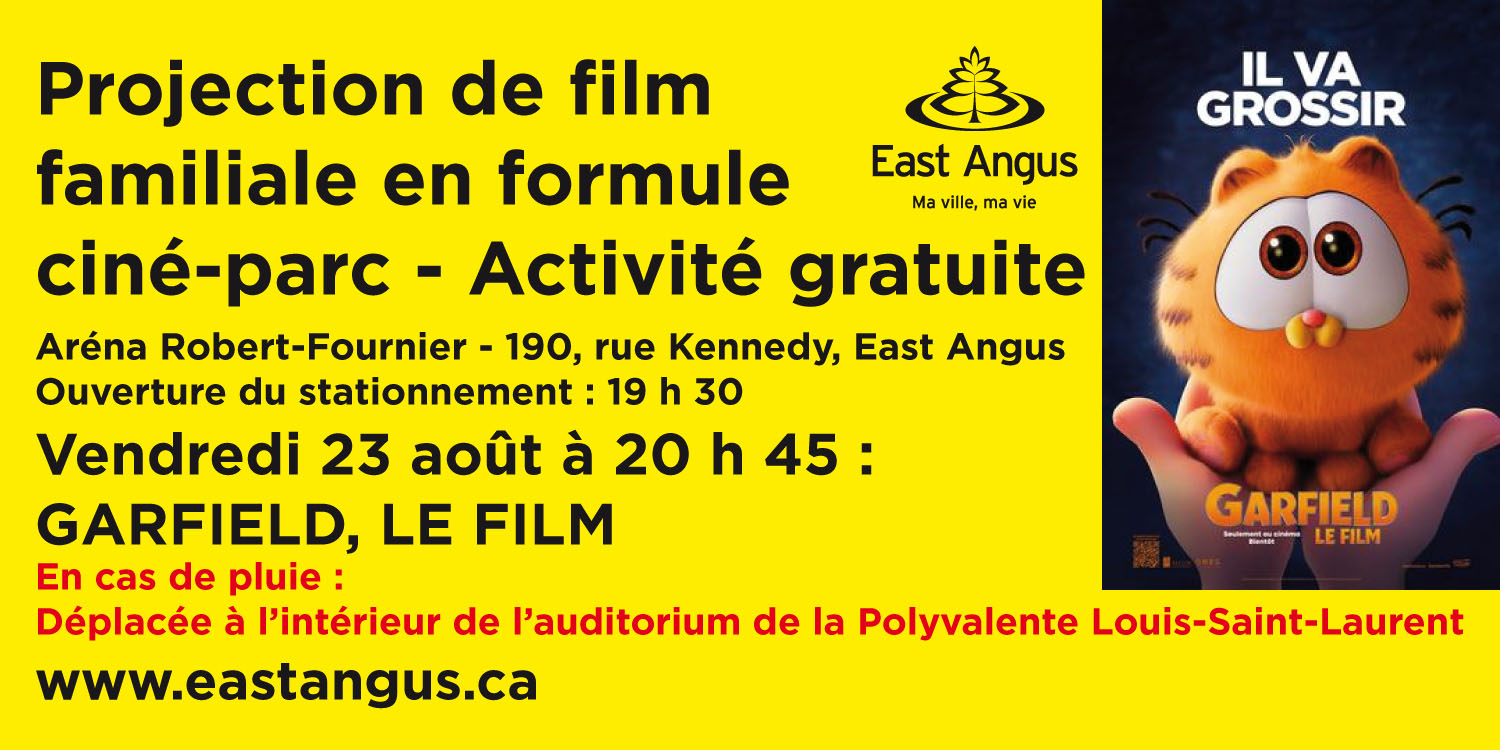 Cinéma plein-air gratuit à l’Aréna Robert-Fournier de East Angus : Vendredi 23 août à 20 h 45 (En cas de pluie à l’intérieur de l’auditorium de la Polyvalente Louis-Saint-Laurent)