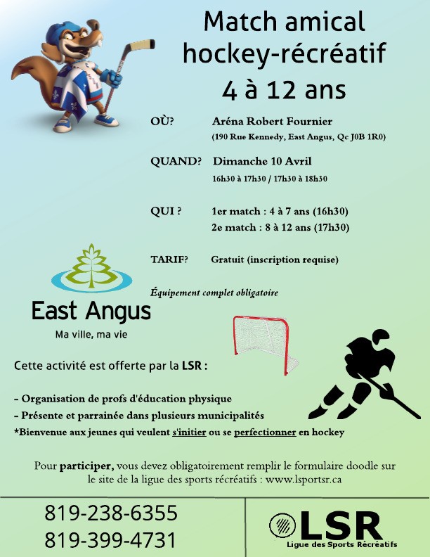Match amical hockey-récréatif 4 à 12 ans