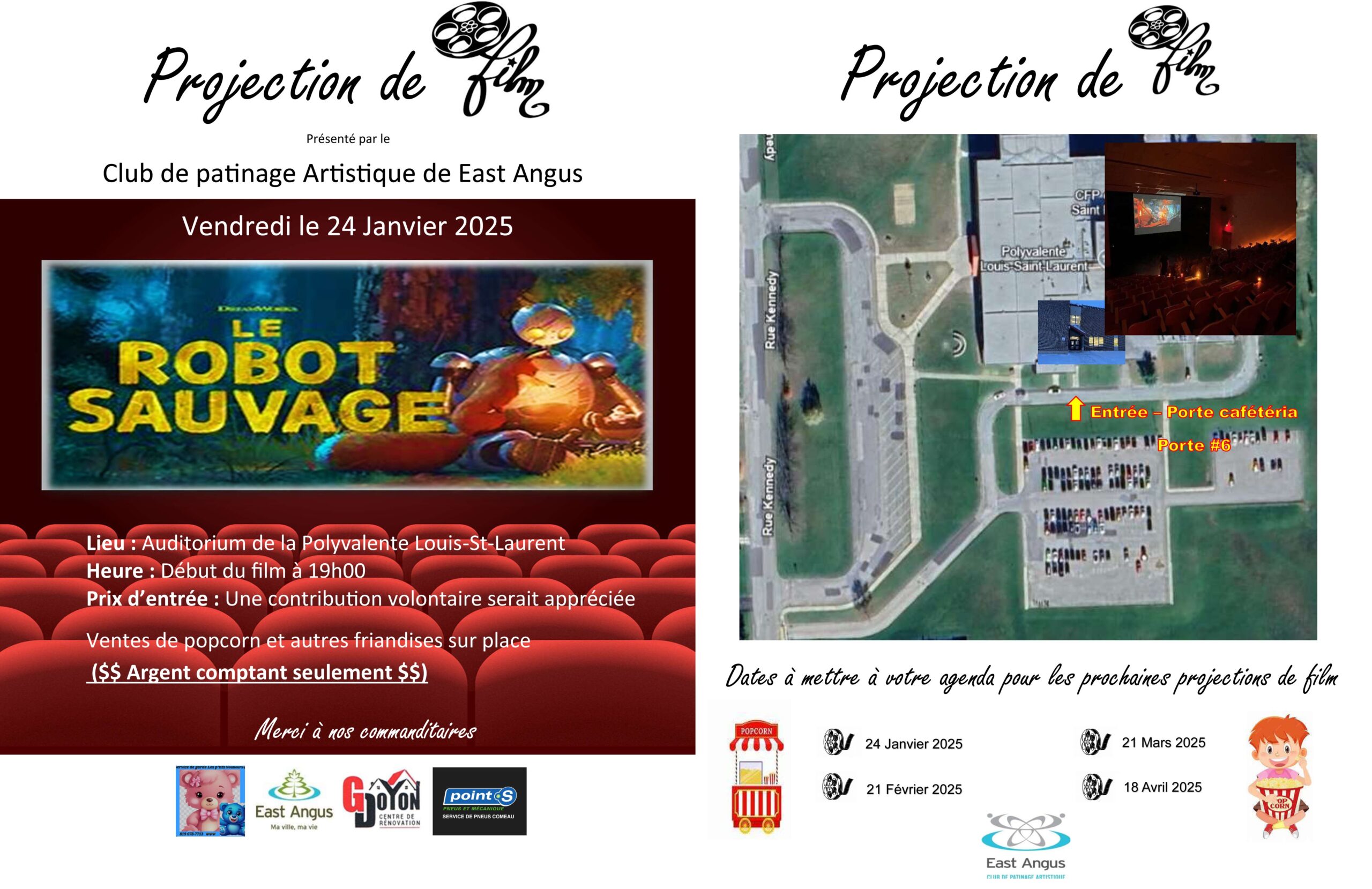 Projections de films – CPA East Angus à l’auditorium de la Polyvalente Louis-Saint-Laurent (Entrée porte #6)