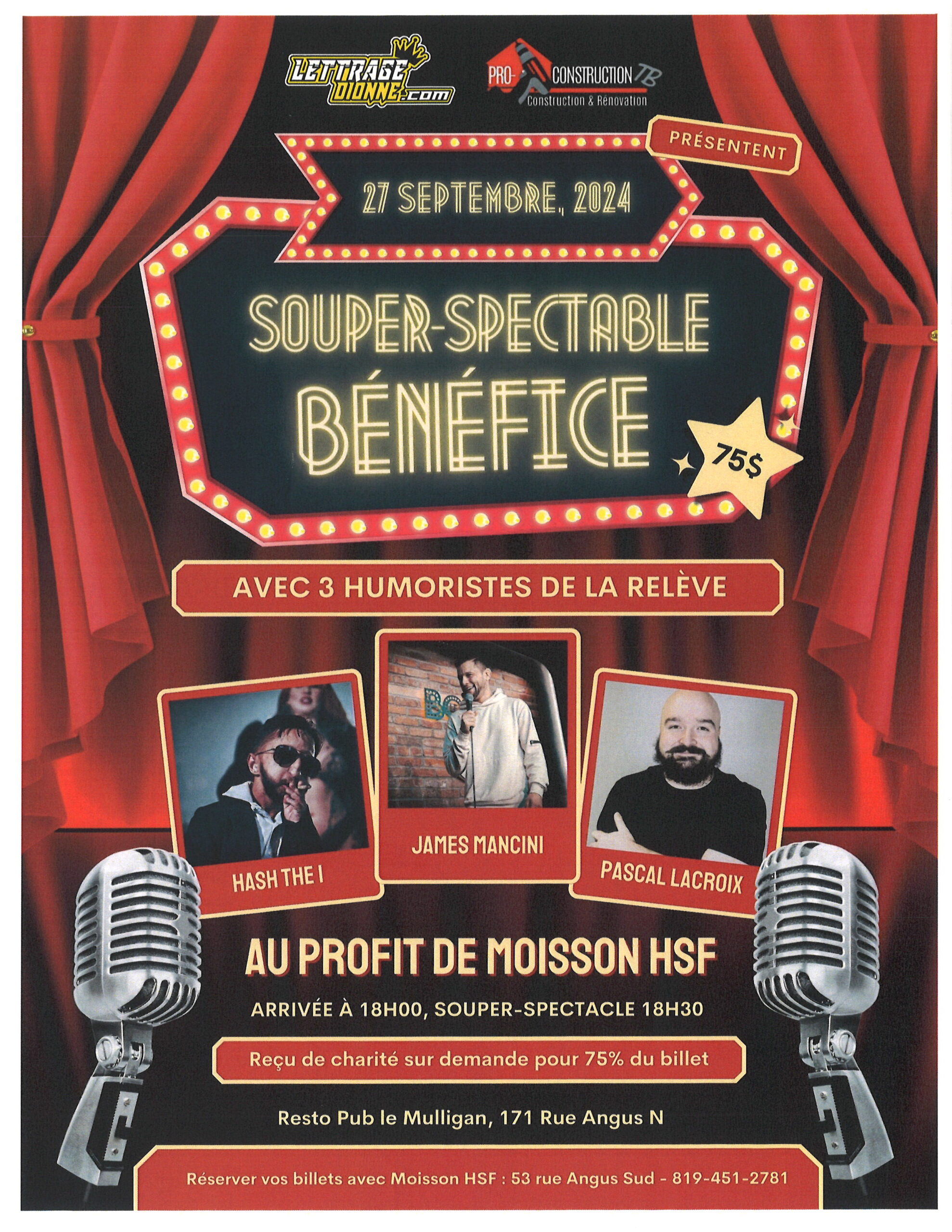 Souper-spectacle bénéfice de Moisson HSF avec 3 humoristes de la relève