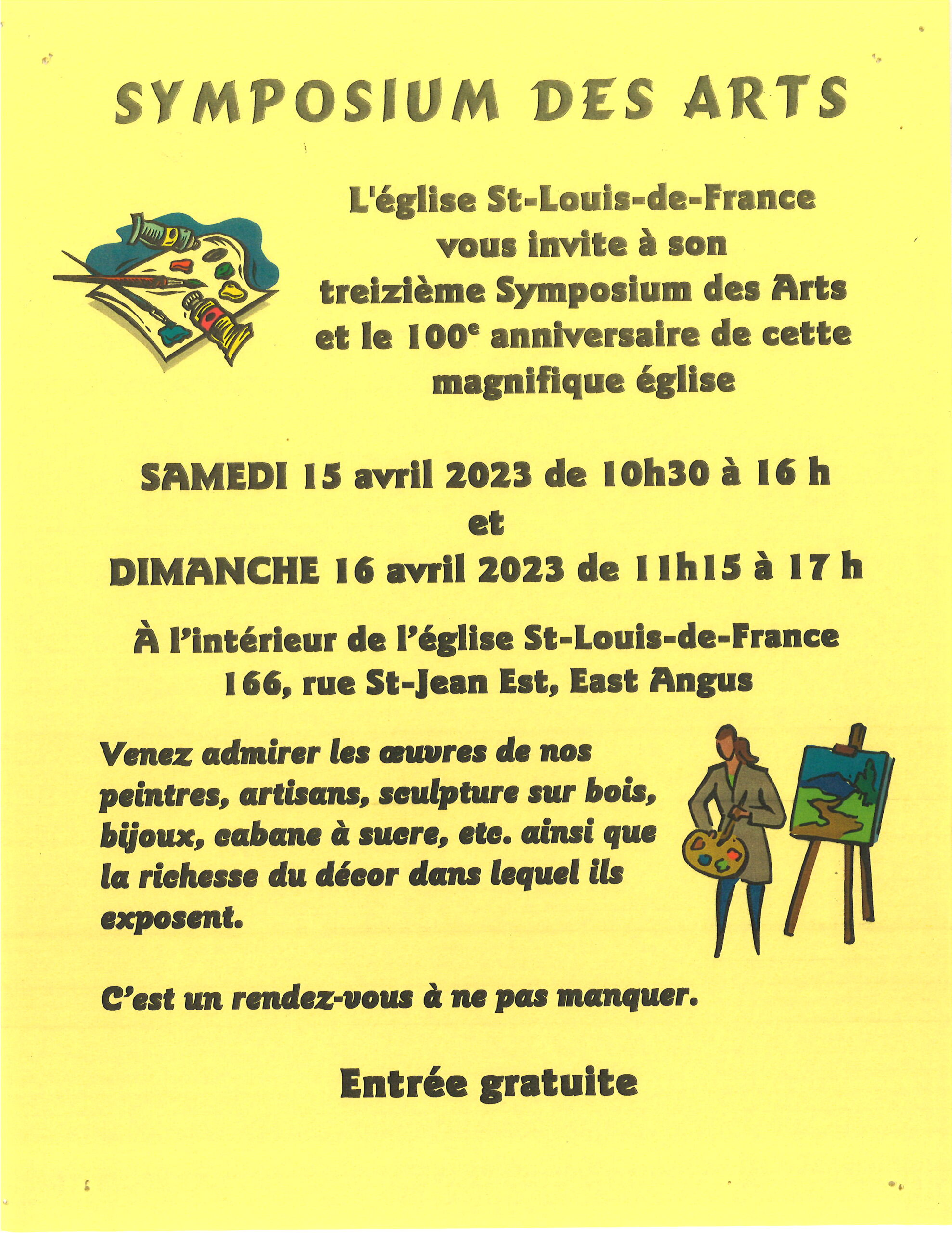 L’église Saint-Louis-de-France vous invite à son 13e Symposium des arts et aux festivités dans le cadre du 100e anniversaire de cette magnifique église.