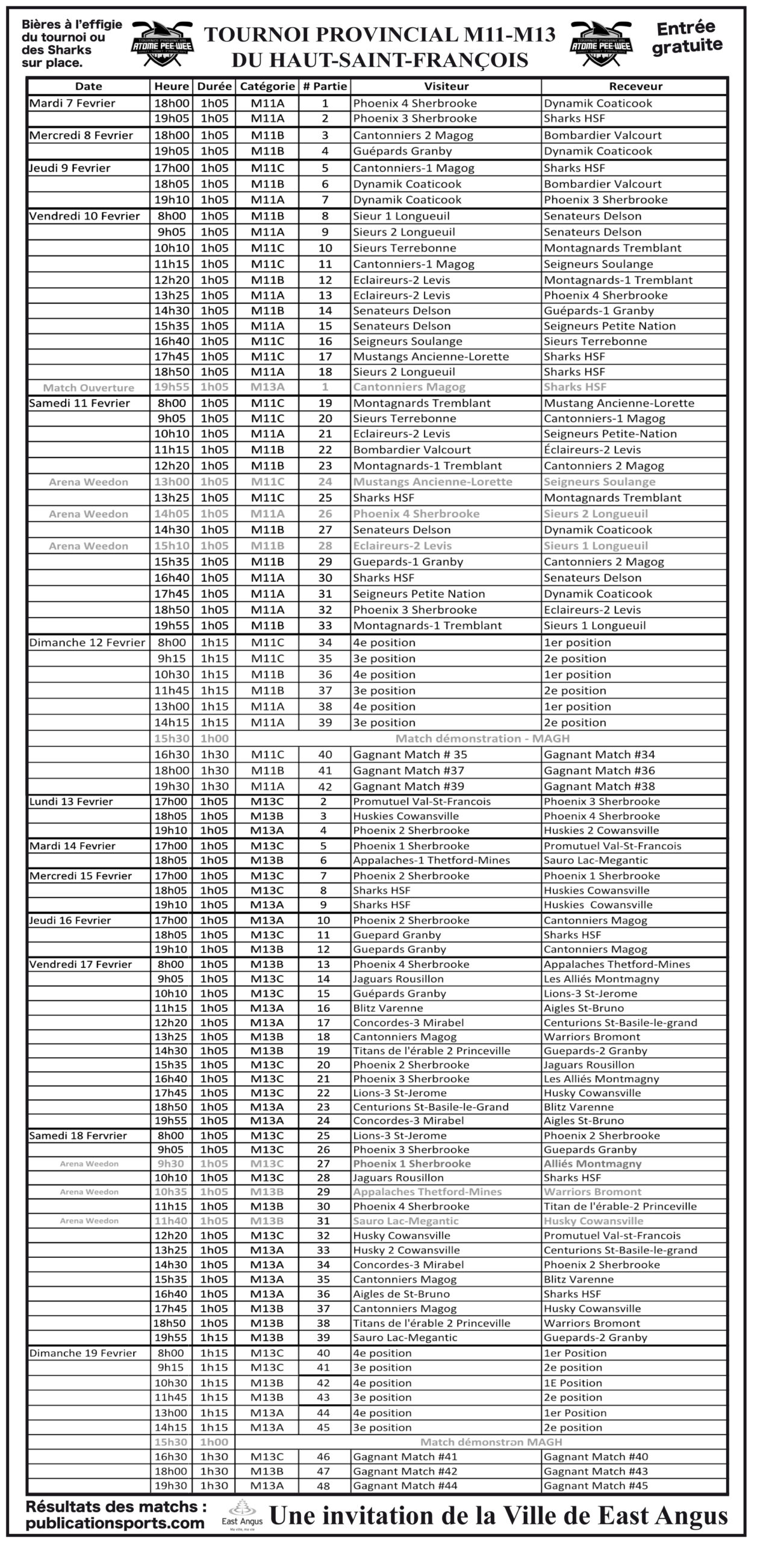 Tournoi provincial atome pee-wee du Haut-Saint-François