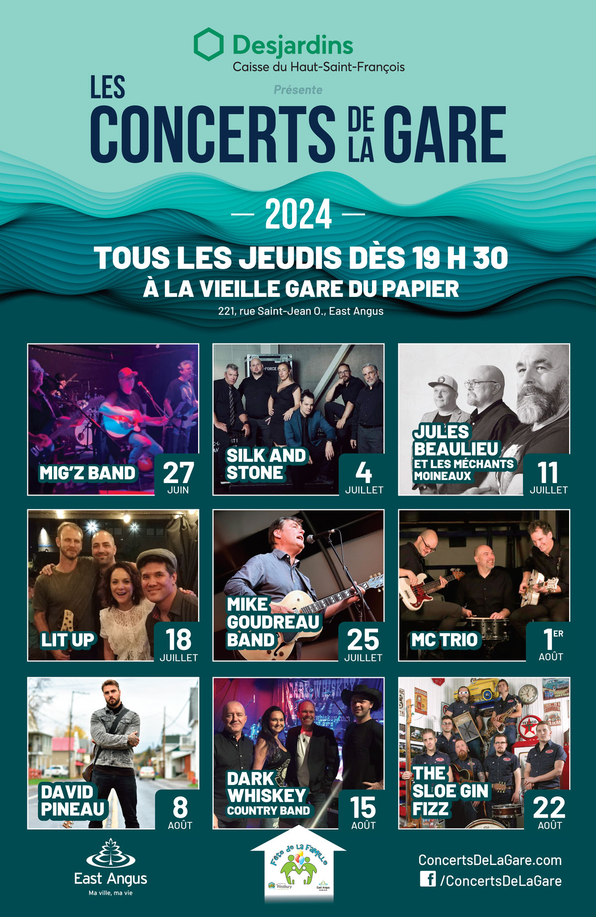 12e édition des Concerts de la Gare en 2024 à la Vieille Gare du Papier située au 221, rue St-Jean Ouest.