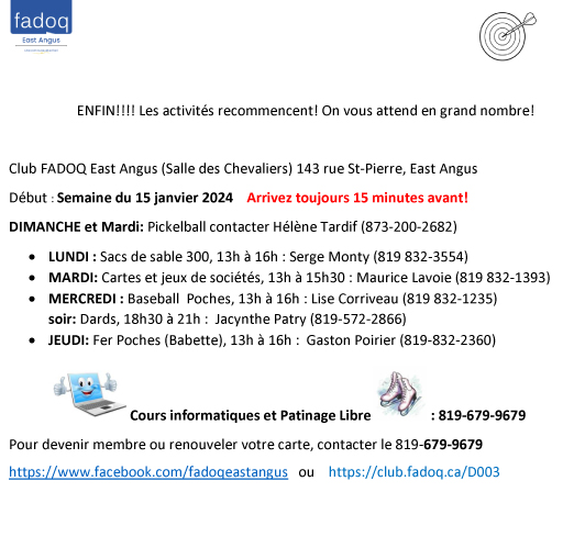 Informations : https://www.facebook.com/fadoqeastangus / https://club.fadoq.ca/d003